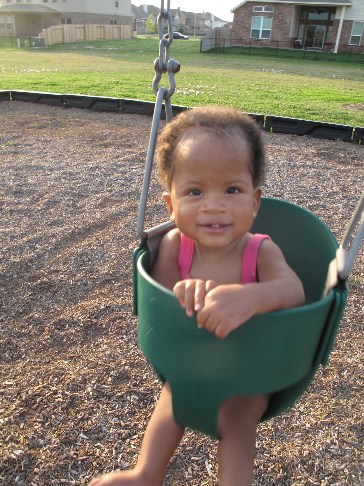Sweetpea is an amazingly happy, content baby. I get to sleep in as late as I want most mornings. I woke up this morning at 10:18 to be exact. I was worried I would wake up to her crying around 8, but nope!! I woke up at 10:18 on my own accord and decided it was time to get up! lol After brushing my teeth, etc, I heard her crying on the monitor, (which never happens so I assumed it was because she had no paci). As I was walking to get her I heard someone mowing their grass, which explains her crying- she hates lawn mowers and always cries if she hears then while in bed.